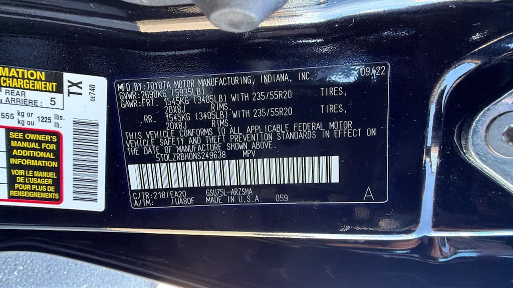 Third Row Seat, Quad Bucket Seats, Power Liftgate Rear Spoiler, MP3 Player, Sunroof, All Wheel Drive, Onboard Communications System, Aluminum Wheels, Privacy Glass. Toyota XSE with Midnight Black Metallic exterior and BLACK interior features a V6 Cylinder Engine with 295 HP at 6600 RPM*.